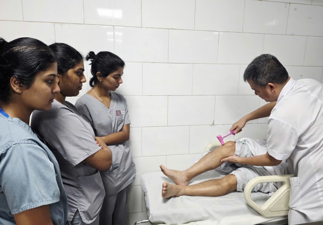TS.BS Nguyễn Trung Nguyên – Giám đốc Trung tâm Chống độc, Bệnh viện Bạch Mai kiểm tra phản xạ của các bệnh nhân ngộ độc cá chình
