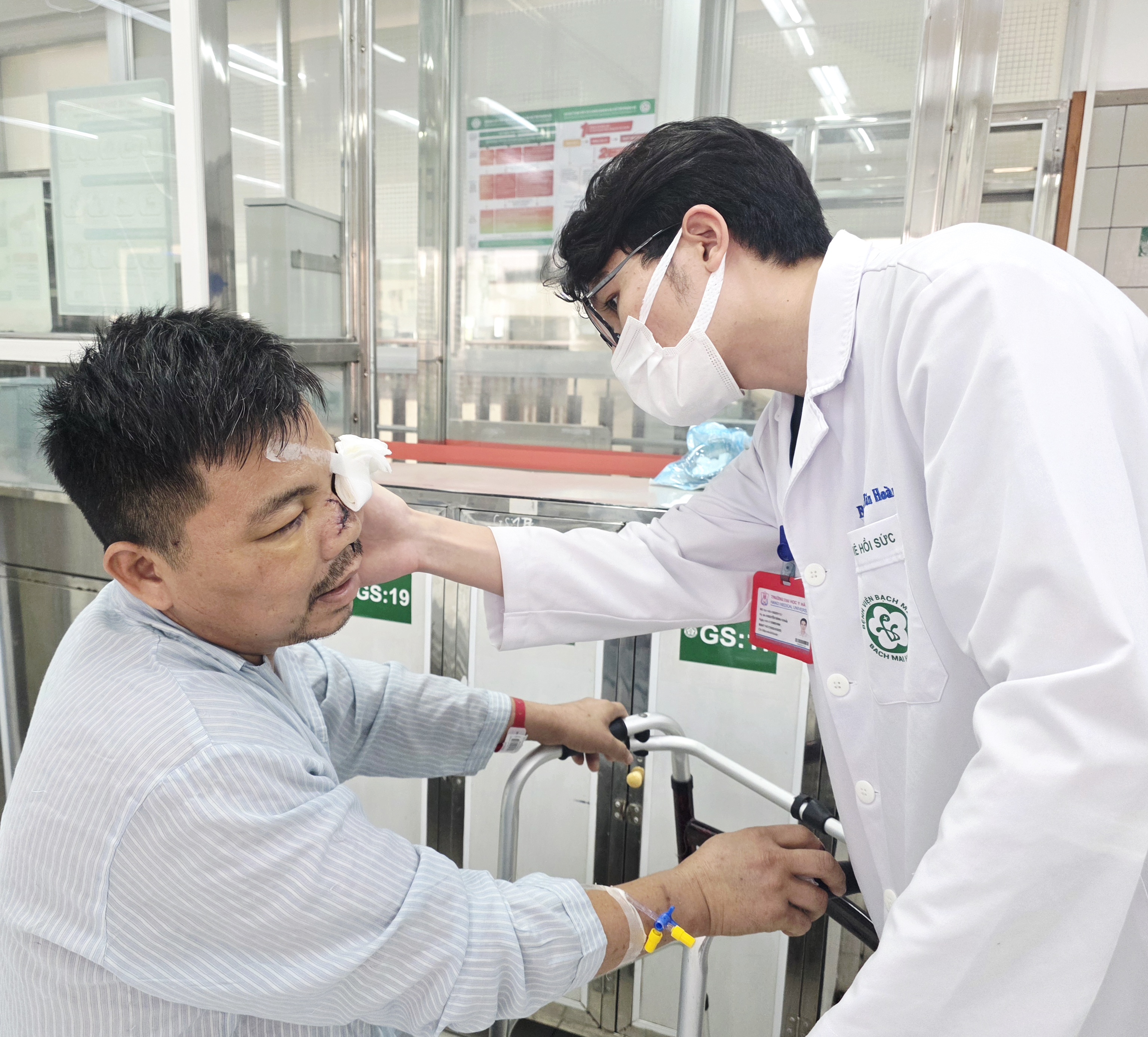 Từ đó, một cuộc chiến thực sự bắt đầu. Các ê-kíp luân phiên, phối hợp: Lấy dị vật kim khí găm sâu. Loại bỏ nhãn cầu trái đã vỡ. Làm sạch các khoang tổn thương. Tái tạo vùng hàm mặt…