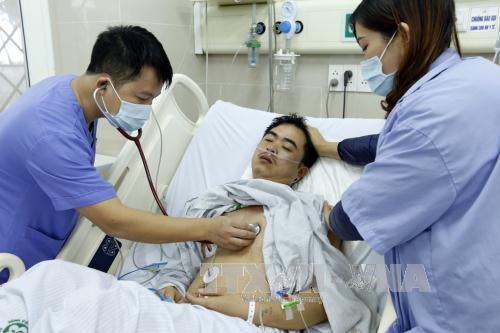 Bác sĩ thăm khám cho bệnh nhân Sằm Văn Tài sau khi được cứu sống bằng kỹ thuật kiểm soát nhiệt độ theo mục tiêu.