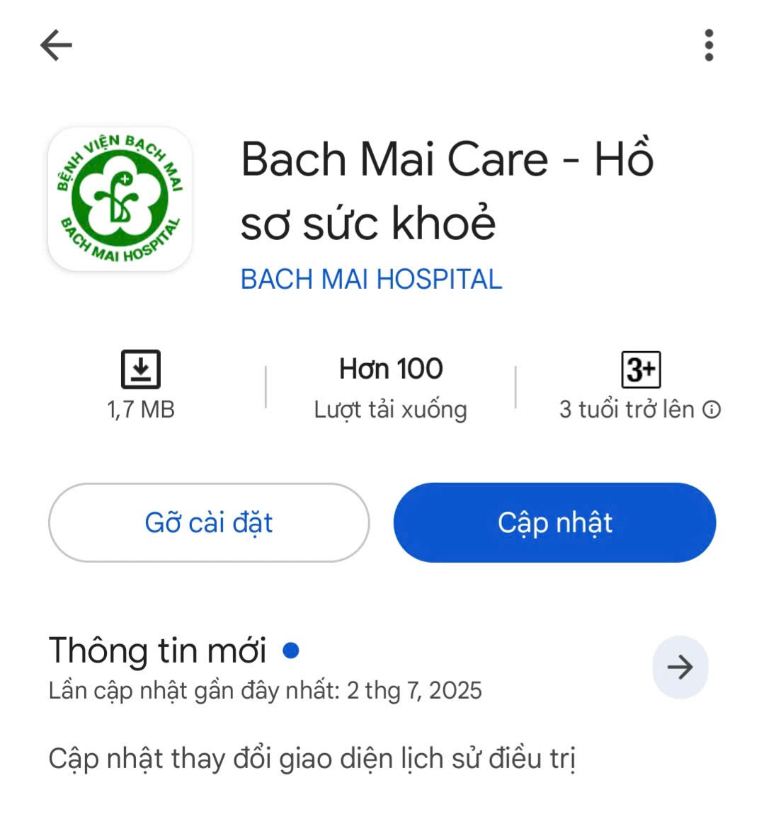 📢 Xoá/Gỡ ứng dụng cũ “Bạch Mai Care” và cài ngay phiên bản mới: