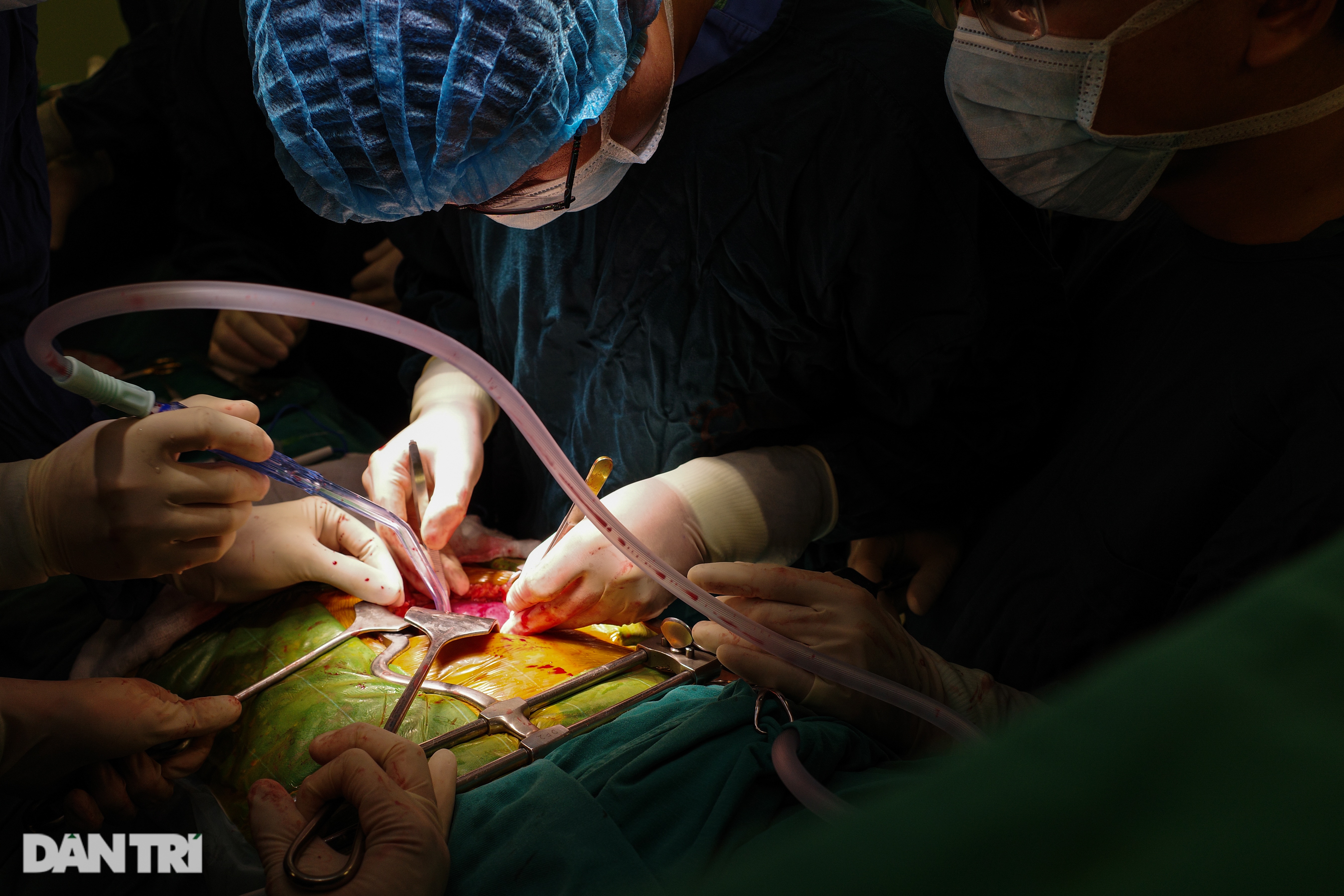 Nếu ví ca phẫu thuật như một dàn nhạc giao hưởng thì phẫu thuật viên như là nhạc trưởng của dàn nhạc đó. Trong ảnh, bác sĩ Ngô Gia Khánh – Trưởng khoa phẫu thuật lồng ngực – đang thực hiện ca mổ ghép thận.