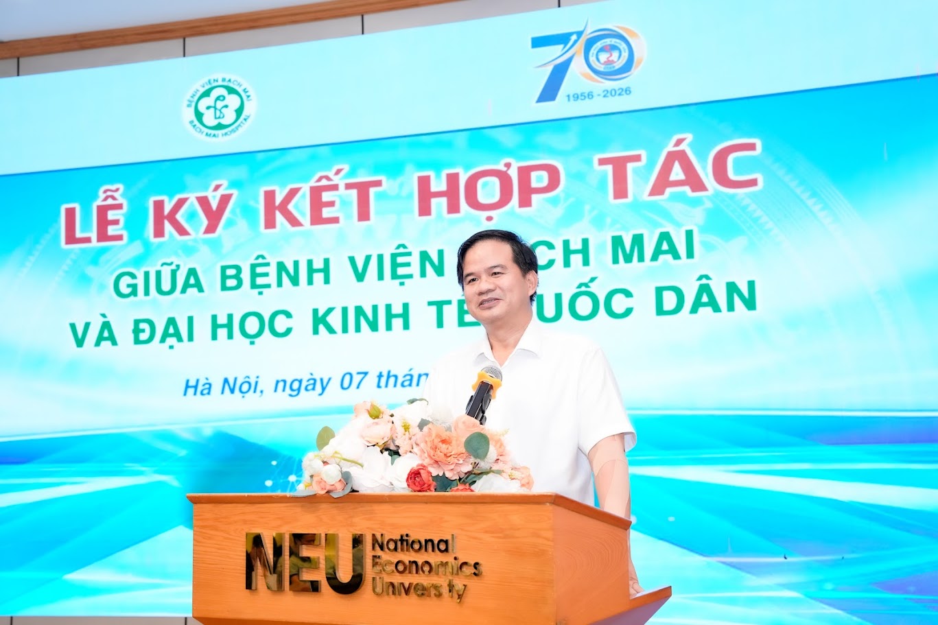 Phát biểu tại lễ ký kết, PGS.TS Đào Xuân Cơ – Giám đốc Bệnh viện Bạch Mai nhấn mạnh, chăm sóc sức khỏe nhân dân không thể là nhiệm vụ riêng của ngành y mà cần sự chung tay của toàn xã hội. Việc hợp tác với NEU được đánh giá là “đúng thời điểm, có tầm nhìn dài hạn”, nhằm phát huy thế mạnh hai bên trong đào tạo, nghiên cứu, quản trị và truyền thông y tế.
