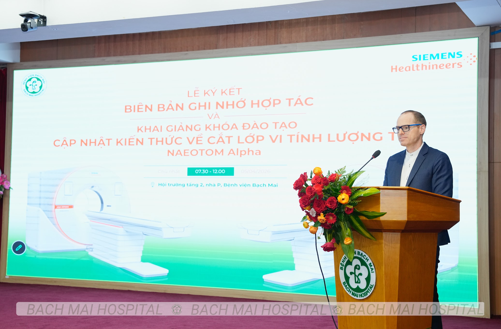 Ông Fabian Martin Singer – Giám đốc Điều hành Siemens Healthineers Việt Nam chia sẻ: “Chúng tôi không chỉ đưa máy móc vào phòng chụp. Việc đồng hành cùng Bạch Mai là để xây dựng năng lực chuyên môn, thúc đẩy nghiên cứu khoa học. Bạch Mai sẽ không chỉ là nơi khám bệnh, mà còn là Trung tâm tham chiếu hàng đầu khu vực – nơi các bác sĩ trong và ngoài nước đến học hỏi và chia sẻ kinh nghiệm.”