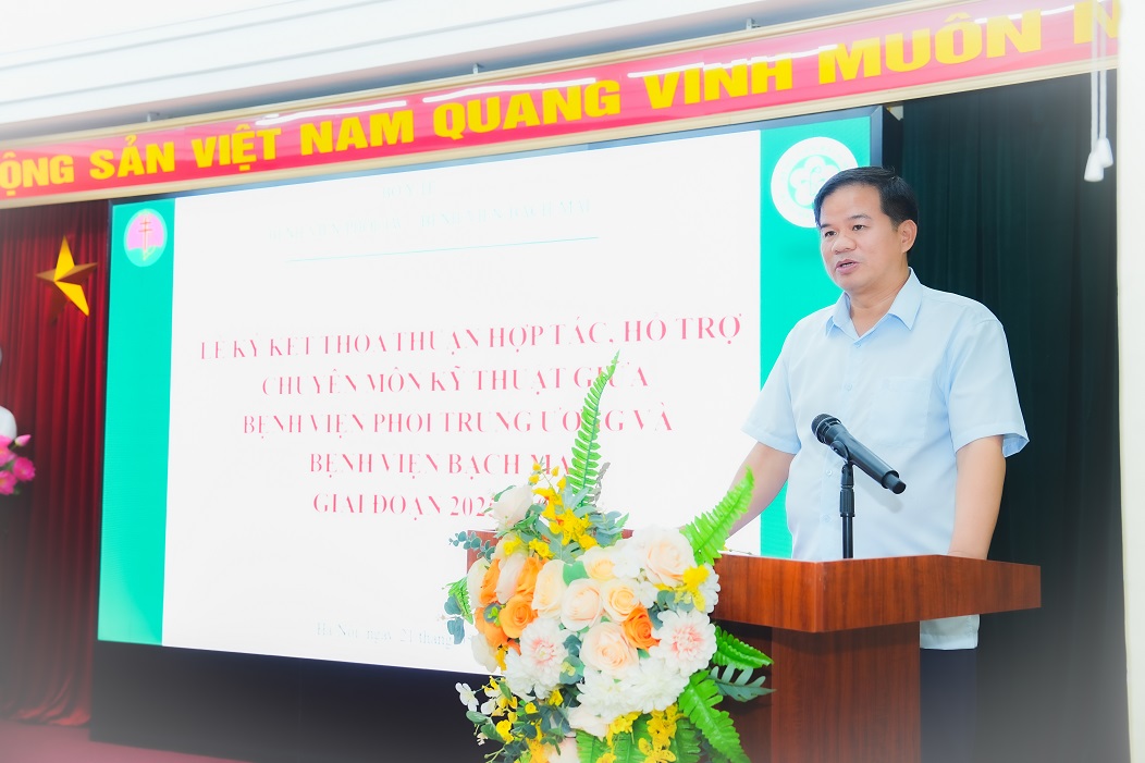 Phát biểu tại buổi lễ, TS.BSCC. Đinh Văn Lượng – Giám đốc Bệnh viện Phổi Trung ương đã bày tỏ sự trân trọng và niềm tin vào sự hợp tác lần này. Ông nhấn mạnh: “Đối với chúng tôi, Bệnh viện Bạch Mai không chỉ là một đối tác tin cậy mà còn là một người bạn đồng hành, một “người thầy” trong nhiều lĩnh vực chuyên môn. Lễ ký kết hôm nay là một minh chứng cho cam kết của cả hai bệnh viện trong việc không ngừng nỗ lực vì sức khỏe cộng đồng. Chúng tôi tin rằng, với sự hợp lực này, chúng ta sẽ cùng nhau đạt được những thành tựu mới, mang lại những giá trị thiết thực cho người bệnh. Thực tế cho thấy, những gì chúng ta đã làm tốt, nay sẽ còn tốt hơn nữa khi có sự chung tay, góp sức của cả hai đơn vị.”