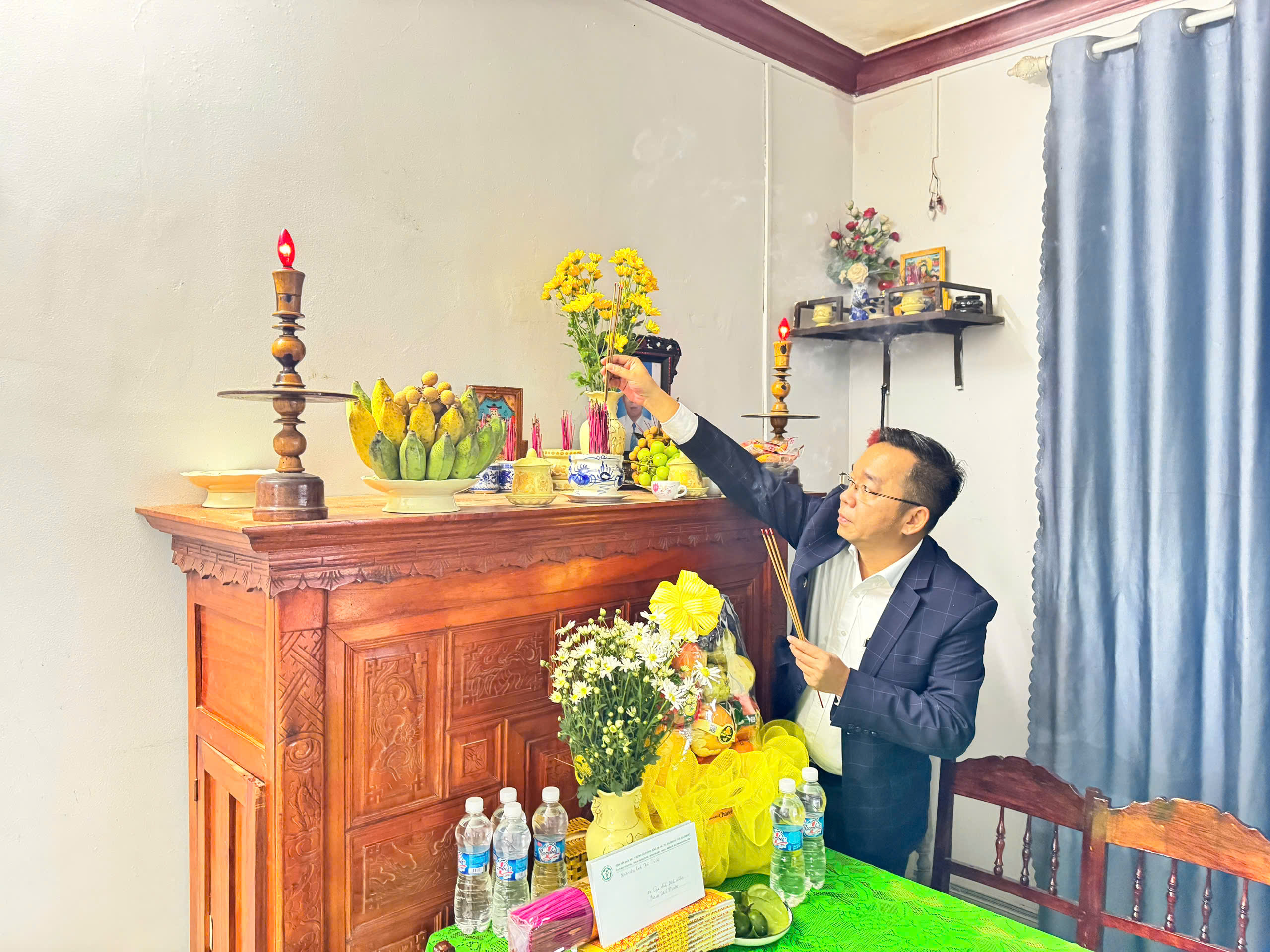 Bác sĩ Trần Thái Sơn và đoàn công tác Bệnh viện Bạch Mai thắp hương tri ân người bệnh Phạm Minh Thuận