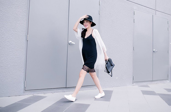 Lê Thủy Anh làm mẹ của hai bé trai, tuổi 33 vẫn sở hữu vóc dáng thon thả xinh đẹp nhờ kiểm soát cân nặng hợp lý trong thai kỳ.