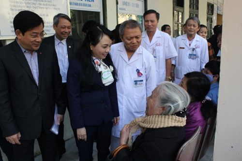 Bộ trưởng Nguyễn Thị Kim Tiến thăm hỏi bệnh nhân đang chờ khám bệnh tại Bệnh viện E.