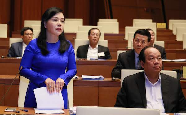 Bộ trưởng Y tế Nguyễn Thị Kim Tiến phát biểu trước Quốc hội sáng 27/10.