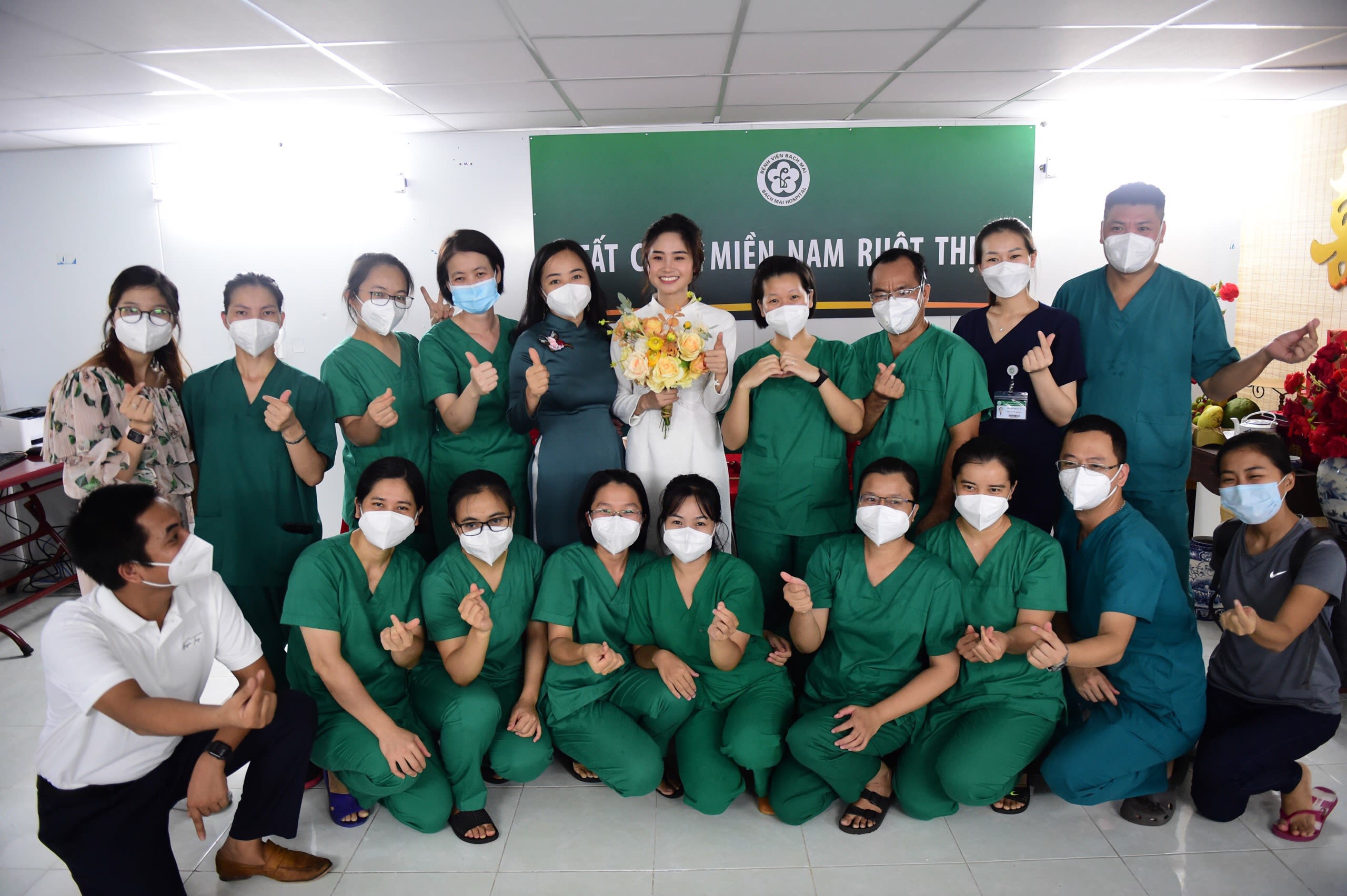 “Một nữ điều dưỡng trong nhóm tôi đến ngày cưới không dám về, không dám nói với ai vì sợ ảnh hưởng công việc. Cô ấy hy sinh hạnh phúc riêng để lặng lẽ hoàn thành nhiệm vụ. Chúng tôi đã cố gắng tặng cho bạn ấy một lễ cưới online đặc biệt. Đó là cảm xúc rất mạnh để khích lệ chúng tôi cần phải cố gắng hơn nữa để thành phố sớm bình yên”, bác sĩ Anh Thư xúc động kể.