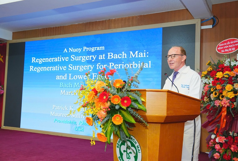 PGS. TS Pat Sullivan, Khoa Phẫu thuật tạo hình, trường Đại học Y Brown, Hoa Kỳ đã chia sẻ những bước tiến trong phẫu thuật tái tạo vùng quanh ổ mắt và vùng dưới của mặt, đặc biệt là kỹ thuật ghép mỡ. Ông cho biết, với mỗi vị trí trên gương mặt đều cần lượng mỡ ghép khác nhau. Sự thành công của phẫu thuật cũng như tuổi thọ của tái tạo phụ thuộc vào nhiều yếu tố như trang thiết bị, công cụ và kỹ thuật. Mỡ ghép có thể sống lâu, ít biến chứng là do kỹ thuật của kỹ thuật viên.