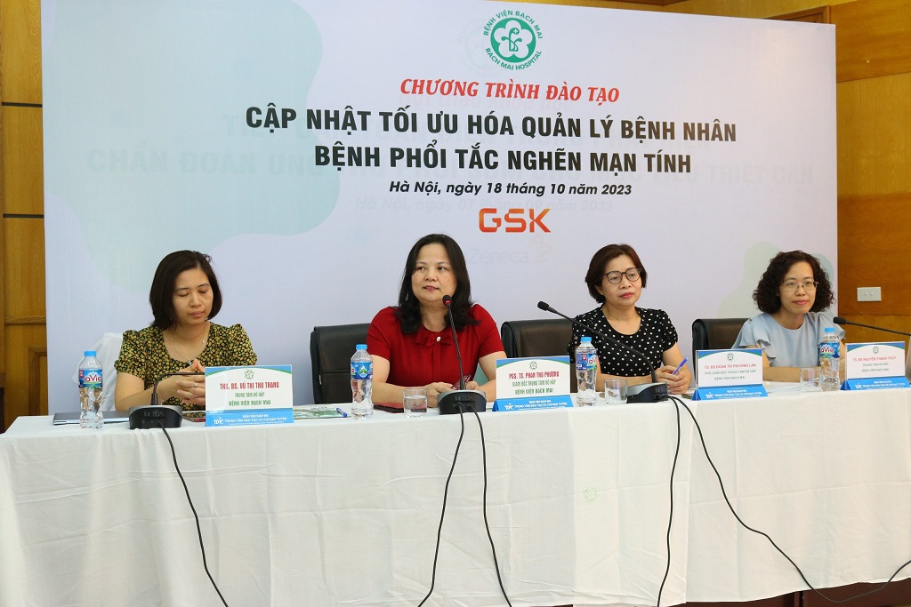 Phát biểu khai mạc khóa đào tạo, PGS.TS.BS. Phan Thu Phương, Giám đốc Trung tâm Hô hấp, Bệnh viện Bạch Mai cho biết: “Làm thế nào để đạt được hiệu quả tối ưu khi điều trị cho bệnh nhân mắc bệnh phổi tắc nghẽn mạn tính (COPD)? Đó là mục tiêu của buổi đào tạo hôm nay. Nội dung của buổi đào tạo bao gồm 3 bài báo cáo của 3 bác sĩ chuyên khoa có rất nhiều kinh nghiệm trong quản lý bệnh COPD. Bài của TS.BS. Đoàn Phương Lan sẽ giúp chúng ta có thêm những kiến thức để điều trị bệnh nhân mắc COPD mà mỗi bệnh nhân lại có một bệnh cảnh khác nhau. Bài của BS. Vũ Thị Thu Trang với 2 ca lâm sàng với nhiều thông tin bổ ích sẽ giúp cho các học viên hiểu được cách tiếp cận điều trị, đánh giá bệnh nhân và thay đổi phác đồ điều trị cho phù hợp với từng người bệnh là hết sức cần thiết cho quá trình điều trị. Bài thứ ba là một nội dung rất hết sức thiết thực, giúp ích cho bác sĩ ở bệnh viện các tuyến. Đó là nội dung về điều trị không dùng thuốc ở bệnh nhân COPD. Nội dung bài báo cáo thứ 3 nói về phục hồi chức năng hô hấp. Đây là một nội dung còn đang bỏ ngỏ, rất cần được quan tâm”.