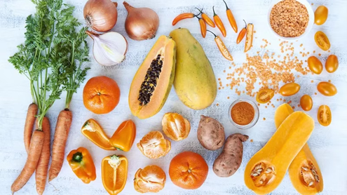 β-carotene cùng các carotenoid khác như alpha-carotene, lycopene, lutein là những sắc tố tự nhiên có trong nhiều loại rau củ quả màu vàng, cam và xanh đậm như cà rốt, bí đỏ, khoai lang, cà chua hay rau lá xanh.