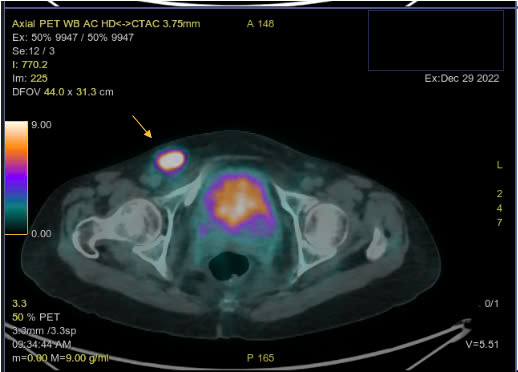 Hình 3. Hình ảnh hạch bẹn kích thước lớn tăng chuyển hóa FDG
