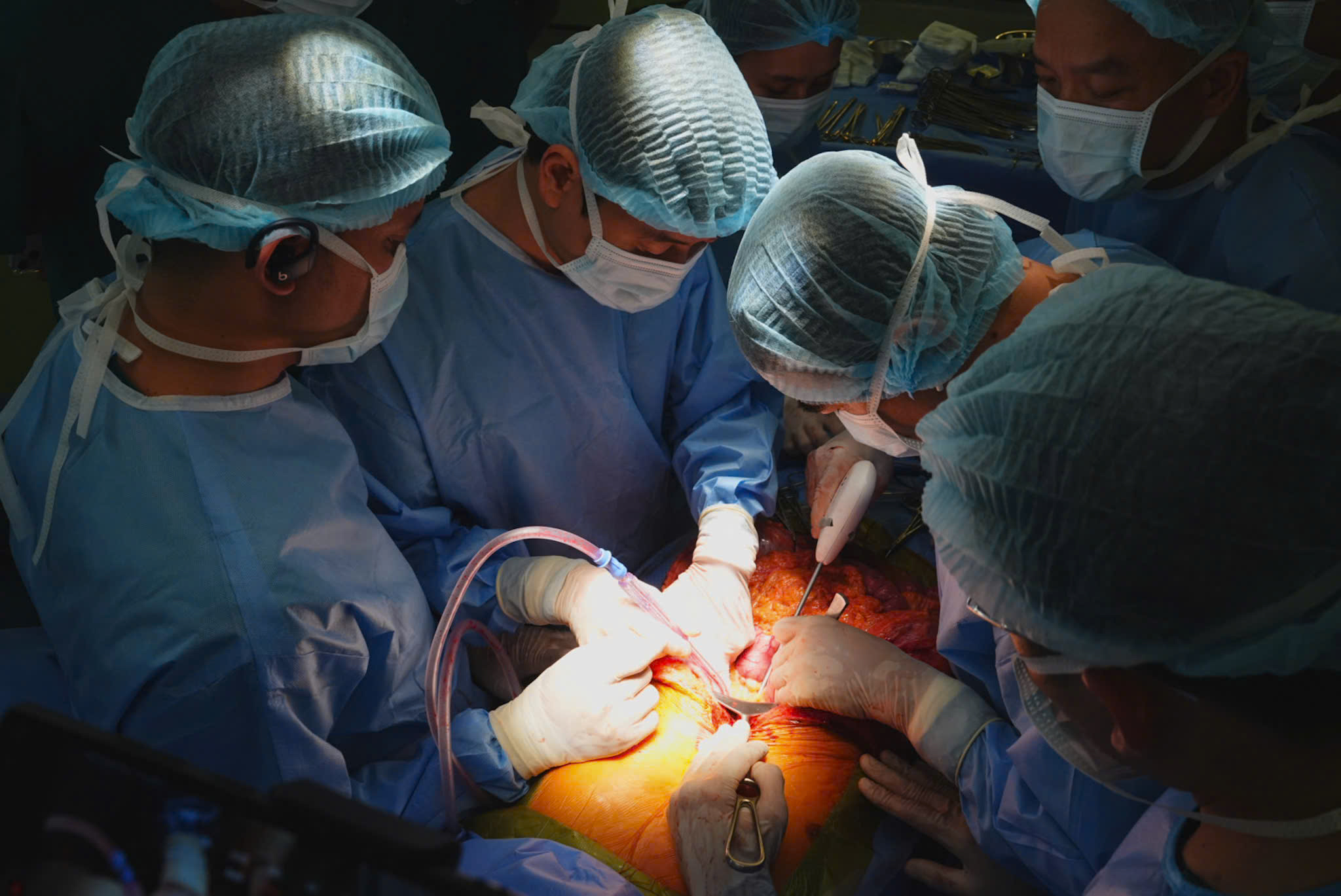 Các bác sĩ Bệnh viện Bạch Mai thực hiện ghép thận hiến cho các bệnh nhân ngay trong khu phẫu thuật