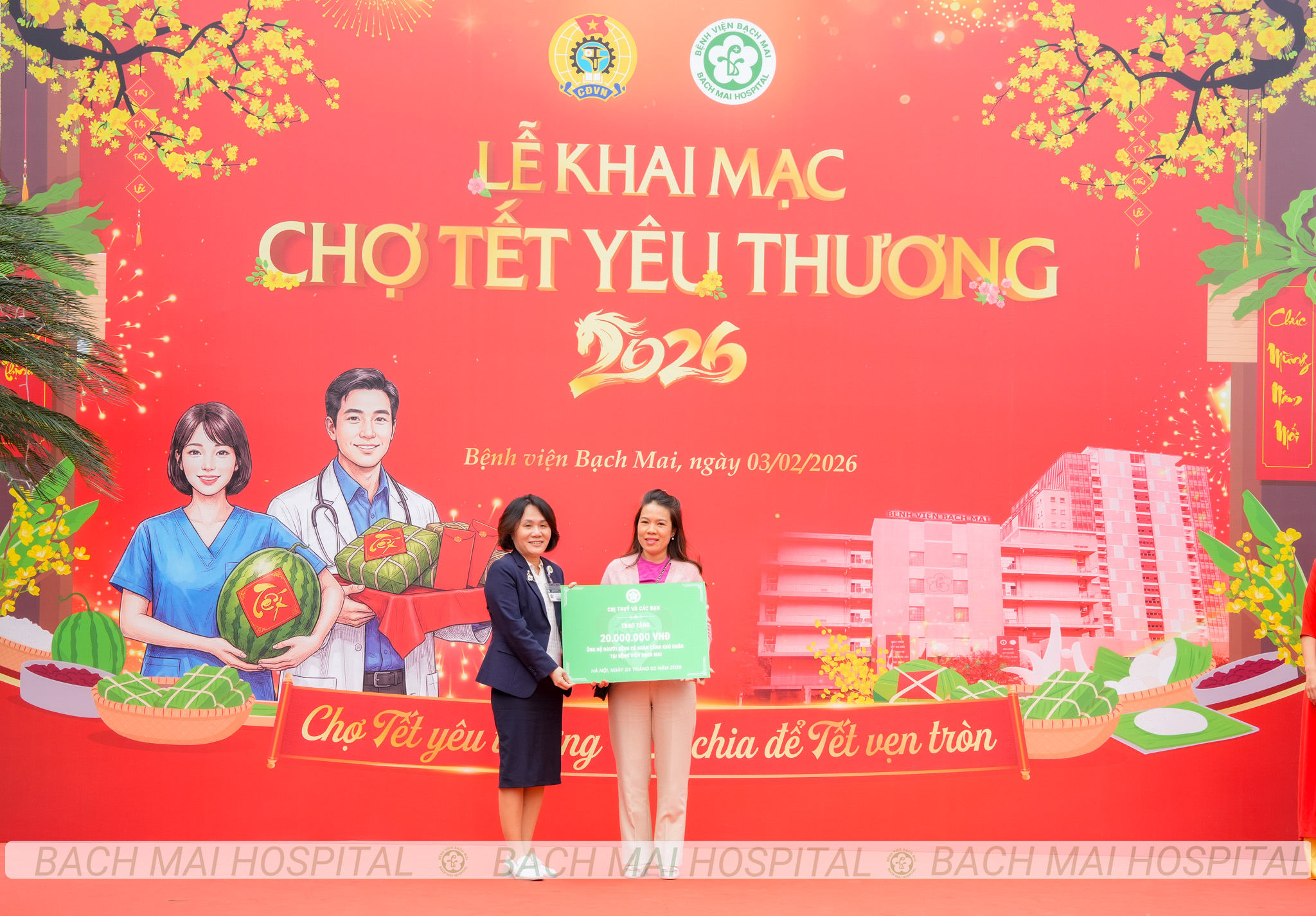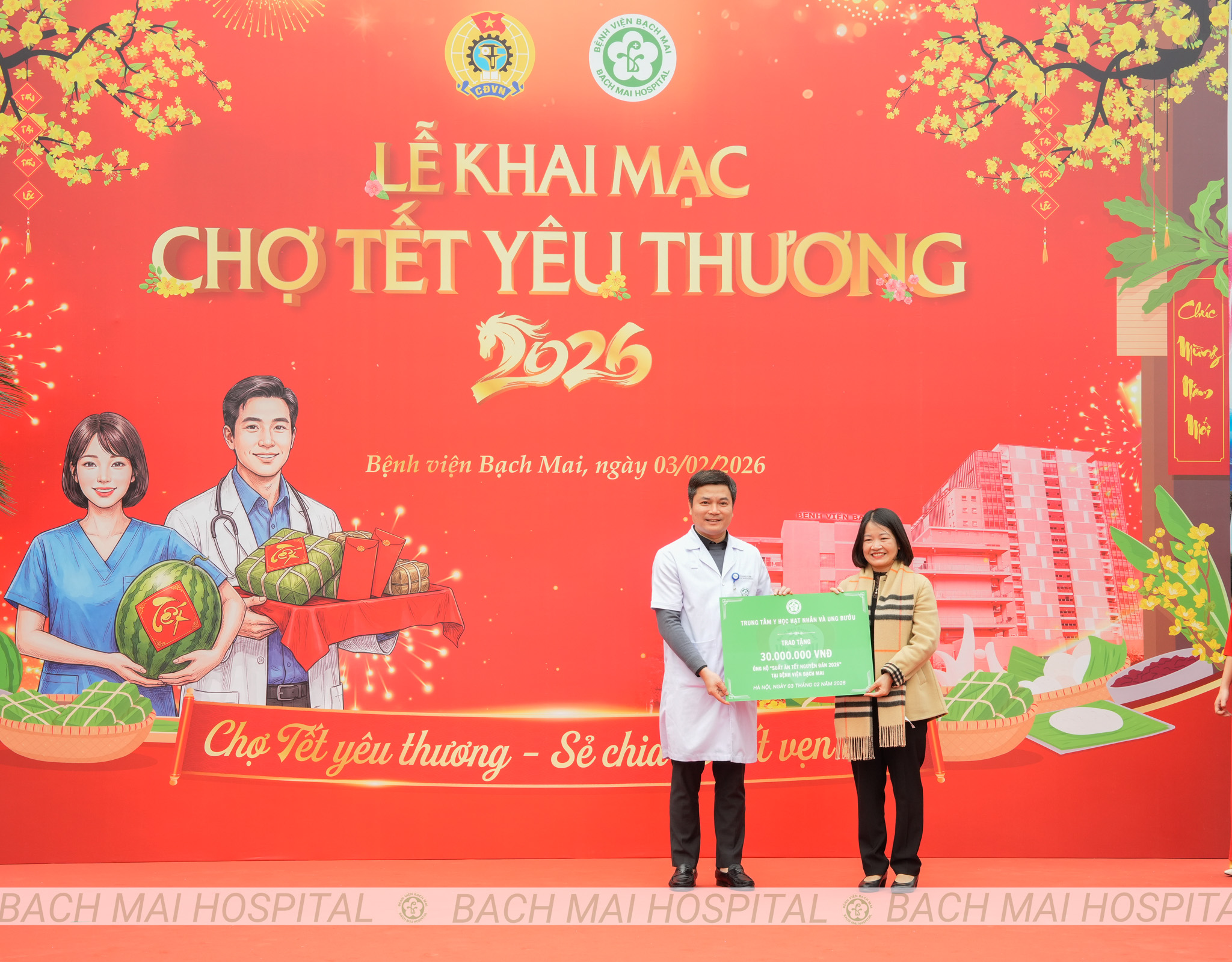 Chương trình vinh dự đón tiếp các đồng chí lãnh đạo đại diện cho Đảng, Nhà nước và ngành Y tế: đồng chí Nguyễn Đình Khang, Ủy viên Ban Chấp hành Trung ương Đảng, Chủ tịch Tổng Liên đoàn Lao động Việt Nam; đồng chí Đỗ Xuân Tuyên, Thứ trưởng Bộ Y tế; đồng chí Nguyễn Lương Tâm, Chủ tịch Công đoàn Y tế Việt Nam cùng PGS. TS Đào Xuân Cơ – Giám đốc Bệnh viện Bạch Mai, các đồng chí trong Ban Giám đốc, đại diện các đơn vị đồng hành và nhiều nhà hảo tâm và bệnh nhân, thân nhân của ngưuòi bệnh