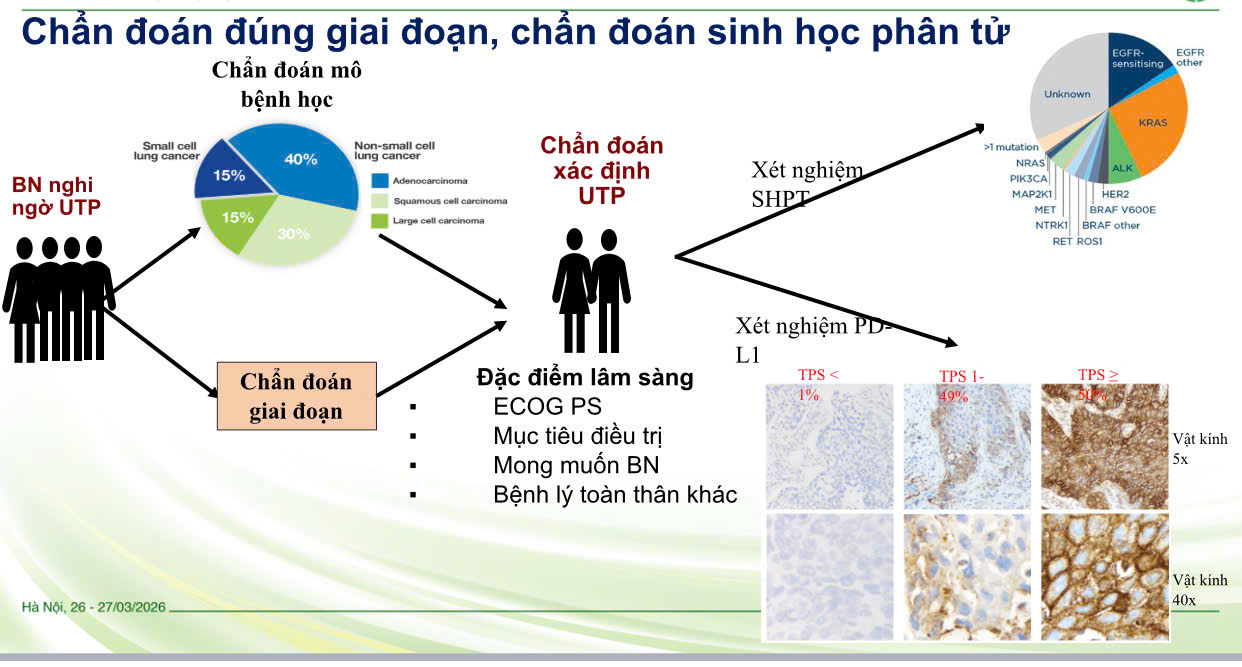 Tại Bệnh viện Bạch Mai, điều trị ung thư phổi là sự phối hợp chặt chẽ của nhiều chuyên khoa như phẫu thuật, xạ trị, hóa trị và miễn dịch. Đặc biệt, việc ứng dụng các dấu ấn sinh học giúp bác sĩ xác định đặc điểm riêng của khối u ở từng bệnh nhân để lựa chọn liệu pháp phù hợp nhất.
