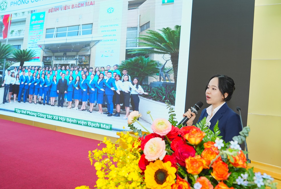 Bệnh viện Bạch Mai, với hơn 115 năm lịch sử, mỗi ngày tiếp nhận từ 8.000 đến 10.000 bệnh nhân ngoại trú và hơn 4.000 bệnh nhân điều trị nội trú. Trong bối cảnh đó, công tác xã hội trở thành một bộ phận không thể thiếu, hỗ trợ bệnh nhân kịp thời về tâm lý, tài chính và các vấn đề liên quan, là cầu nối giúp bệnh nhân tiếp cận dịch vụ y tế thuận lợi hơn, đồng thời lan tỏa tinh thần nhân ái trong cộng đồng y tế.