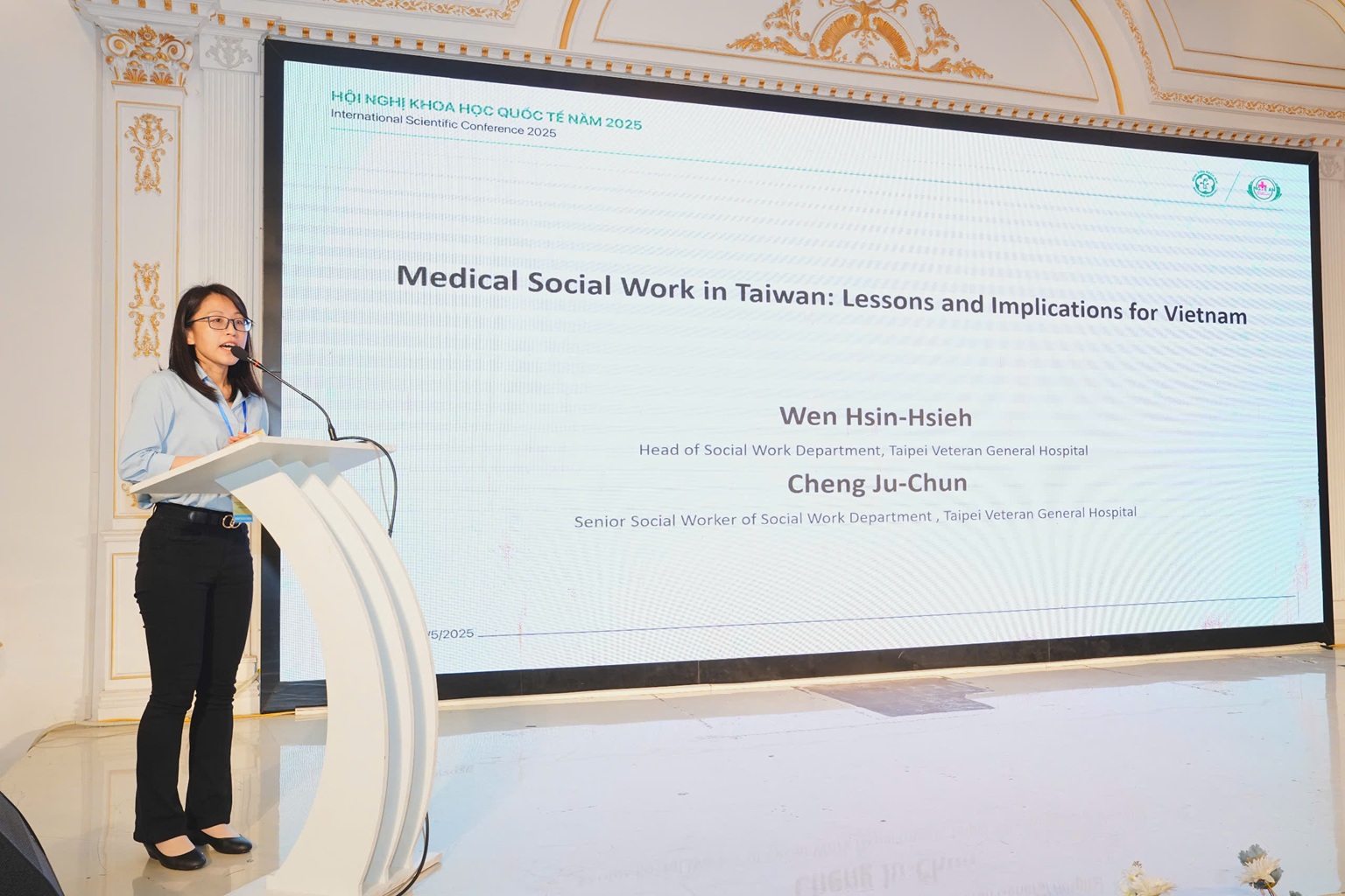 Kinh nghiệm từ Đài Loan: Chuyên gia Cheng Ju Chun, Văn phòng Công tác xã hội, Bệnh viện Cựu chiến binh Đài Bắc chia sẻ kinh nghiệm của Đài Loan: Bà cho biết vai trò của CTXH trong việc lập kế hoạch chăm sóc nâng cao (Advance Care Planning), bao gồm các quyết định về người đại diện chăm sóc sức khỏe, các biện pháp duy trì sự sống, hiến tạng… Bà cũng đề cập đến những thách thức trong phát triển CTXH, như tình trạng thiếu nhân lực và sự cần thiết của việc cấp phép hành nghề để nâng cao vị thế chuyên nghiệp của nhân viên CTXH.