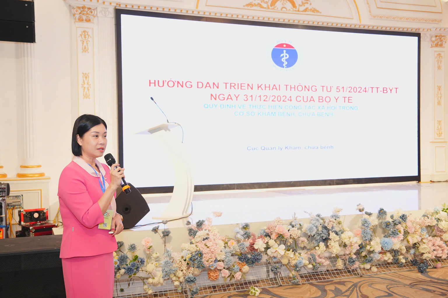 Ths. Trần Thị Vân Ngọc – Phó chánh văn phòng Cục Quản lý khám chữa bệnh, Bộ Y tế đã trình bày hướng dẫn thực hiện Thông tư 51/2024/TT-BYT quy định về thực hiện CTXH trong cơ sở khám bệnh, chữa bệnh. Thông tư này bao gồm 9 điều, quy định chi tiết về phạm vi điều chỉnh, dịch vụ CTXH, quy trình cung cấp dịch vụ, trách nhiệm của cơ sở khám chữa bệnh và người làm CTXH… Thông tư 51/2024/TT-BYT được xem là hành lang pháp lý quan trọng, tạo điều kiện thuận lợi cho việc triển khai và phát triển CTXH trong các bệnh viện tại Việt Nam.