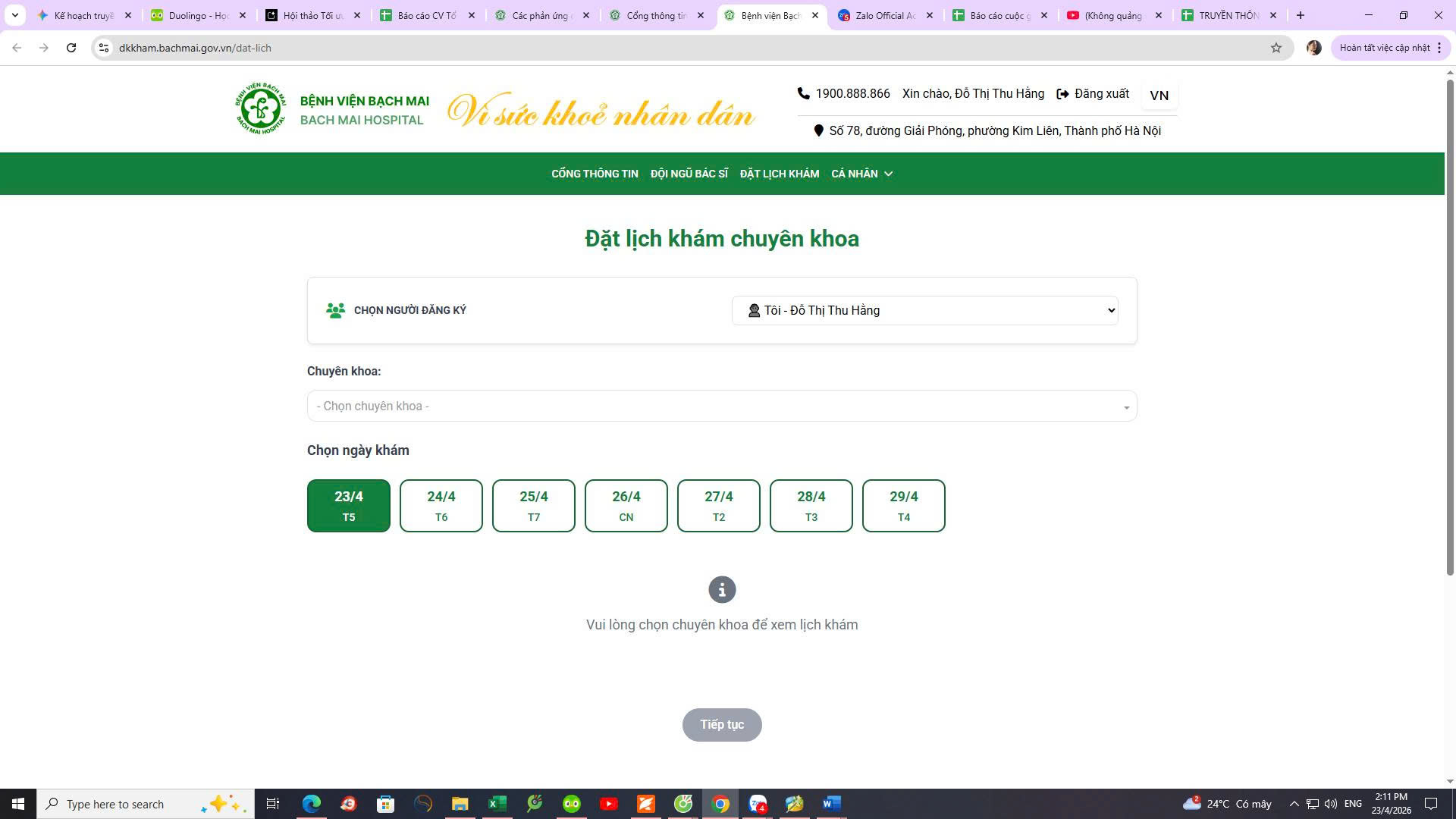 Trong kỷ nguyên công nghệ 4.0, sự hài lòng của người bệnh không chỉ đến từ chất lượng điều trị mà còn từ sự thuận tiện, minh bạch và nhanh chóng. Thấu hiểu những băn khoăn của người dân khi tổng đài 1900.888.866 đôi khi gặp tình trạng quá tải do số lượng cuộc gọi quá lớn, Bệnh viện Bạch Mai đã tối ưu hóa tính năng Đặt lịch khám trực tuyến ngay trên Cổng thông tin điện tử. Đây là bước tiến quan trọng trong nỗ lực không ngừng cải tiến nhằm mang lại trải nghiệm tốt nhất cho nhân dân khi đến thăm khám tại Bệnh viện.