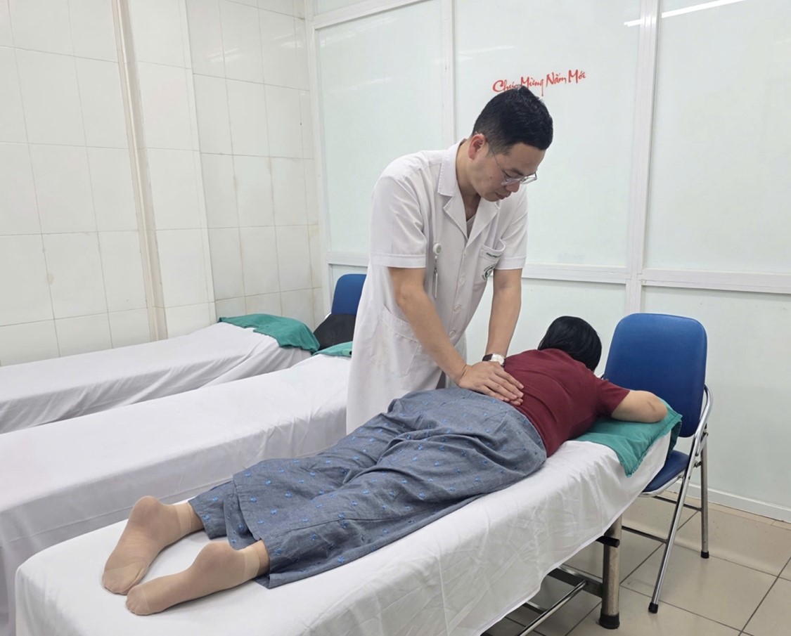 Theo các bác sĩ Khoa Y học cổ truyền, trường hợp của bà Mây được điều trị bằng phương pháp kết hợp: ôn châm (châm cứu kết hợp cứu ngải), xoa bóp bấm huyệt, giác hơi và các thủ thuật tác động cột sống đúng kỹ thuật.