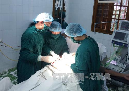 Các y, bác sỹ Bệnh viện đa khoa huyện đảo Bạch Long Vỹ tiến hành phẫu thuật cho bệnh nhân. Ảnh: Nguyễn Đức Quân/TTXVN.
