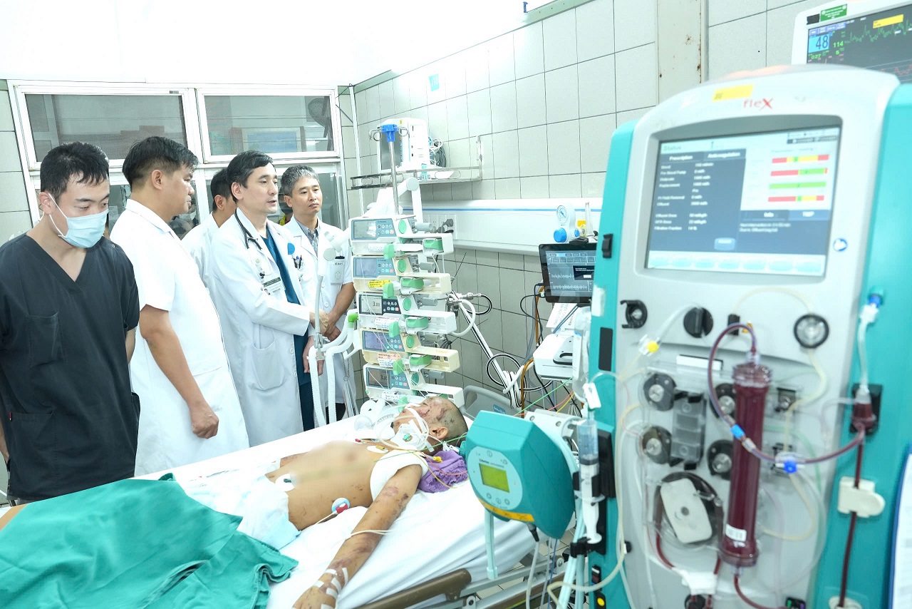 GS. Masao Hashimoto (ngoài cùng bên trái) hội chẩn cùng các giáo sư, bác sĩ của Bệnh viện Bạch Mai nhằm nỗ lực cứu bệnh nhi của vụ lũ quét thôn Làng Nủ, Lào Cai.