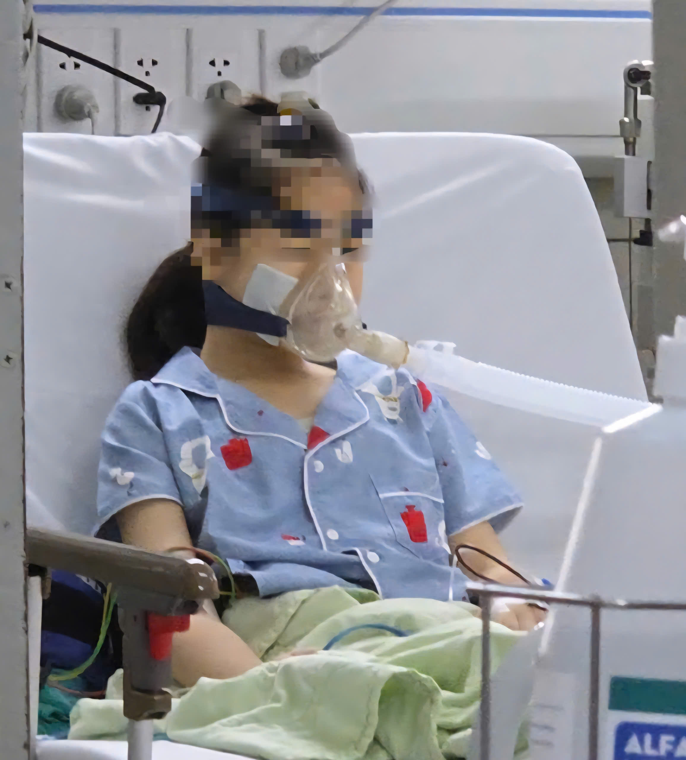 Ảnh bệnh nhi đang được hỗ trợ hô hấp bằng máy thở không xâm nhập