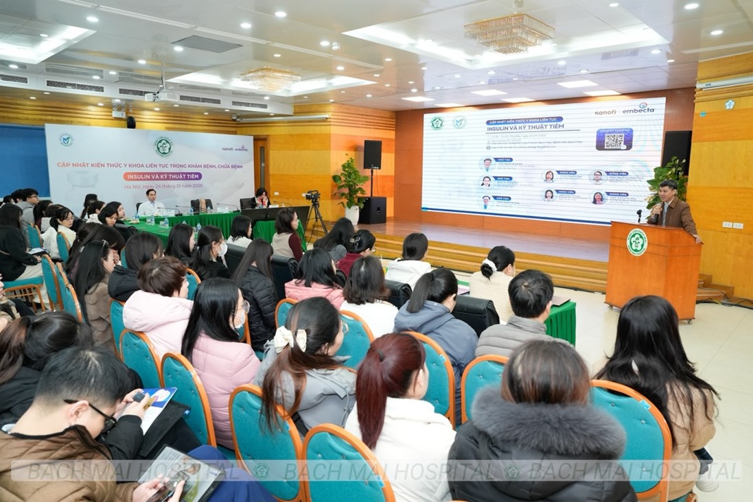 Nhằm cập nhật kiến thức y khoa cho các y bác sĩ, điều dưỡng, ngày 24/1 Bệnh viện Bạch Mai đã tổ chức khai giảng lớp đào tạo “Insulin và Kỹ thuật tiêm”. Chương trình mang đến nhiều thông tin, kiến thức thiết thực và ý nghĩa với sự chia sẻ, giảng dạy, đào tạo từ các chuyên gia của Khoa Nội tiết – Đái tháo đường, Bệnh viện Bạch Mai.