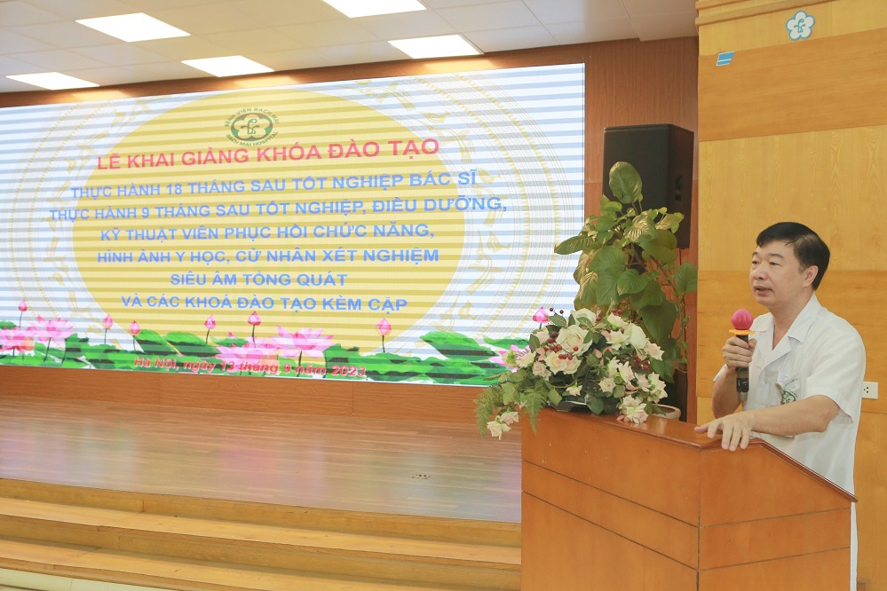 Thay mặt Ban lãnh đạo bệnh viện, TS.BS Đỗ Văn Thành – Phó Bí thư Đảng ủy, Trưởng phòng Tổ chức cán bộ đã phát biểu khai mạc và chia sẻ ý kiến với các học viên: Bệnh viện Bạch Mai là môi trường lý tưởng có tất cả các chuyên khoa, đặc biệt là những chuyên khoa hàng đầu để các học viên có nhiều cơ hội trải nghiệm thực tế, học hỏi, tích lũy kiến thức từ các thế hệ y bác sĩ, chuyên gia giỏi của Bệnh viện. Đối với các bác sĩ, kỹ thuật viên, điều dưỡng sau tốt nghiệp trên nhà trường thì việc thực hành cực kỳ quan trọng, sau tốt nghiệp khóa thực hành mới chính thức được cấp phép để vững bước trên con đường nghề nghiệp. Các học viên cần hết sức tập trung, nghiêm túc học tập, kể cả việc tham gia các buổi trực để có tư duy xử lý, quyết định phương án chẩn đoán, điều trị trúng và đúng, tôi luyện bản lĩnh nghề nghiệp. Bệnh viện cũng đã có kế hoạch thiết thực để động viên các học viên trong quá trình học tập. Những học viên tốt nghiệp xuất sắc sẽ được ưu tiên trong tuyển dụng.