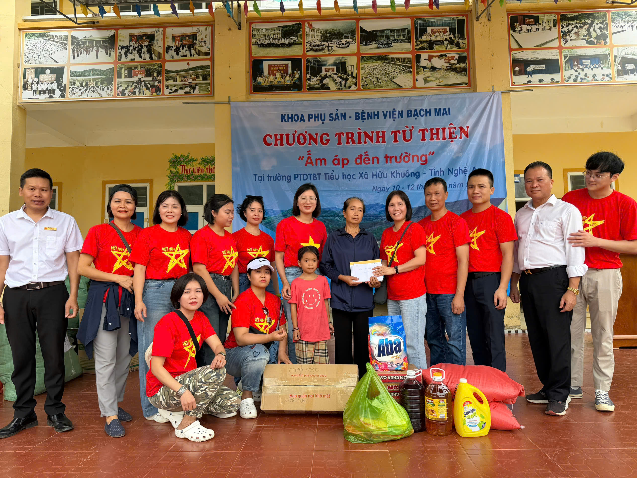 Cuối tuần vừa qua, vượt hàng trăm cây số với những con đường đèo quanh co, cách trở, các y bác sĩ khoa Phụ sản, Bệnh viện Bạch Mai đã đến được với các em học sinh tại điểm trường Phổ thông Dân tộc Bán trú Tiểu học Hữu Khuông, Nghệ An. Với những món quà ý nghĩa gồm nhu yếu phẩm, quần áo, vật dụng sinh hoạt, vật dụng nhà bếp và các suất học bổng, tổng trị giá quà tặng hơn 150 triệu đồng, các y bác sĩ hi vọng sẽ phần nào giúp cuộc sống của các em vơi bớt khó khăn, thiếu thốn.
