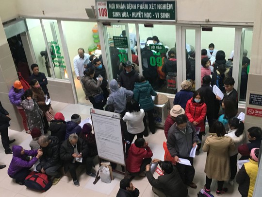 Trời rét khiến người dân nhập viện tăng đột biến. Trong ảnh: Người dân Hà Nội khám bệnh tại Bệnh viện Bạch Mai