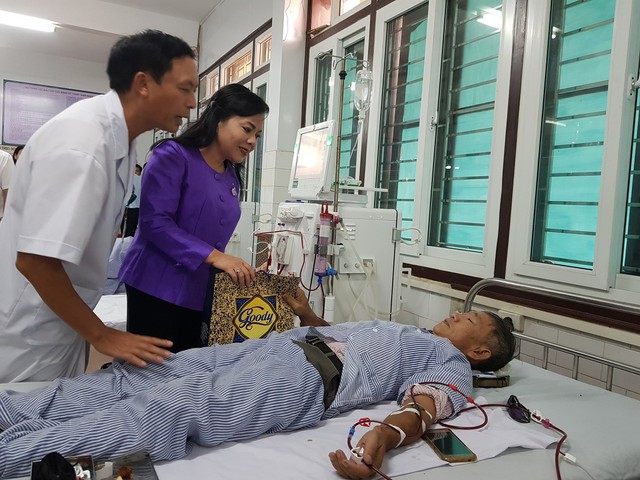 Bộ trưởng Bộ Y tế Nguyễn Thị Kim Tiến thăm, tặng quà bệnh nhân chạy thận nhân tạo ở BVĐK tỉnh Nam Định.