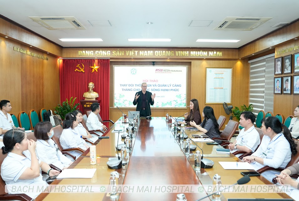 Tiếp nối chương trình đào tạo, Hội thảo “Thay đổi thói quen và quản lý căng thẳng cho cuộc sống hạnh phúc” diễn ra chiều 18/12, tập trung vào nâng cao năng lực tự chăm sóc sức khỏe tinh thần cho điều dưỡng. Trong môi trường y tế nhiều áp lực, căng thẳng nghề nghiệp nếu không được kiểm soát tốt sẽ ảnh hưởng trực tiếp đến sức khỏe cá nhân và chất lượng chăm sóc người bệnh.