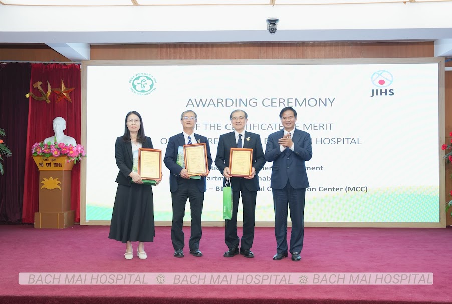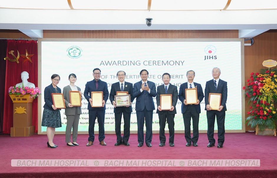 Nhân dịp này, PGS.TS Đào Xuân Cơ, Giám đốc Bệnh viện Bạch Mai đã trao Giấy khen của Giám đốc Bệnh viện cho các chuyên gia JIHS có nhiều đóng góp nổi bật trong hoạt động hợp tác, đào tạo và chuyển giao kỹ thuật tại bệnh viện.