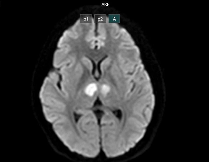 Phim chụp cho thấy não bệnh nhân bị tổn thương vùng đồi thị hai bên