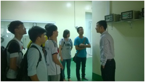 Sinh viên thực tập tìm hiểu về máy gia tốc tại Trung tâm Chiếu xạ Hà Nội.