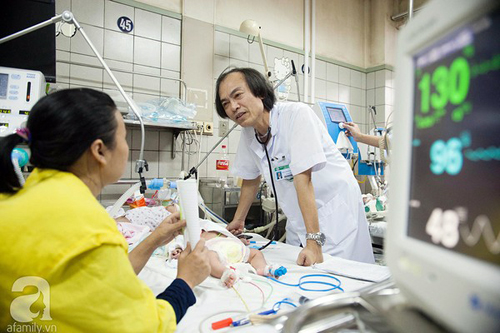 PGS.TS Nguyễn Tiến Dũng thăm khám cho bệnh nhân nhi.
