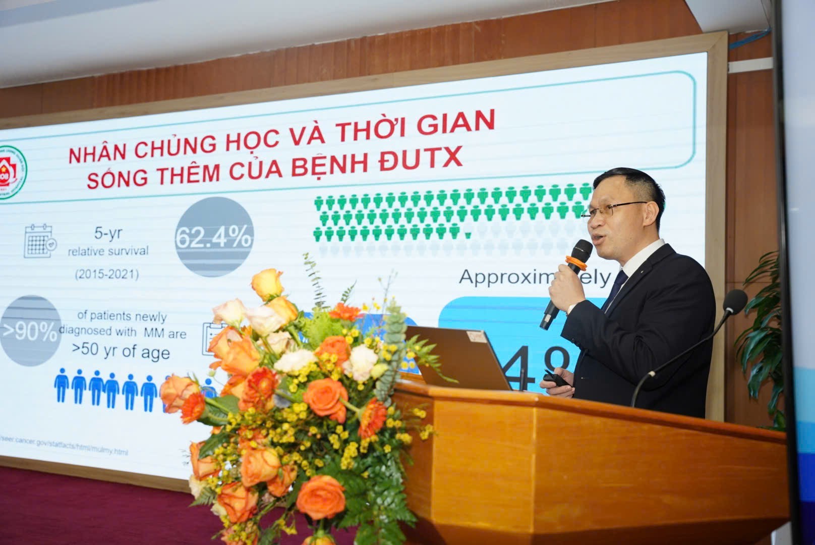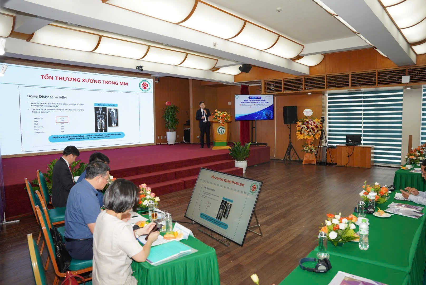 Cụ thể tại hội thảo, với nhóm thể trạng kém hoặc mắc nhiều bệnh đồng thời – bệnh nhân không đủ điều kiện ghép, các chuyên gia chỉ ra mục tiêu là cân bằng hiệu quả và an toàn, cá thể hóa phác đồ, điều chỉnh liều phù hợp, ưu tiên giảm độc tính và duy trì chất lượng sống. Các phác đồ hiện hành tại Việt Nam gồm VMP, DRd, D-VMP; Daratumumab khi kết hợp trong giai đoạn tấn công giúp nâng cao tỷ lệ đáp ứng và kéo dài thời gian lui bệnh.