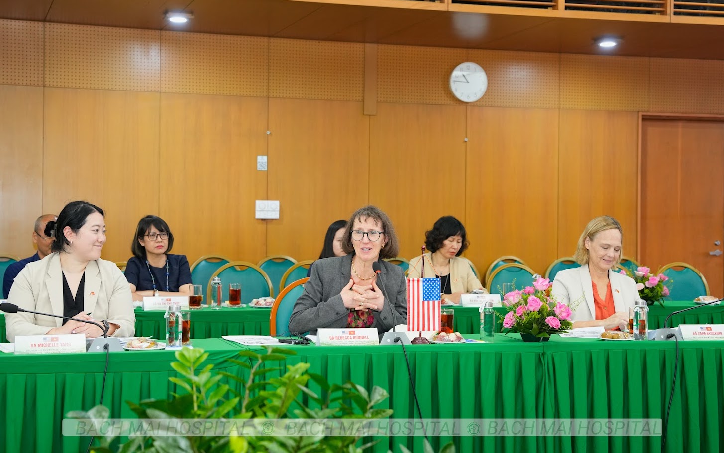 Phát biểu tại buổi làm việc, bà Rebecca Bunnell bày tỏ ấn tượng trước sự đón tiếp trọng thị, chuyên nghiệp của Bệnh viện Bạch Mai, đồng thời đánh giá cao quy mô hoạt động và tinh thần tận tâm của đội ngũ cán bộ y tế.