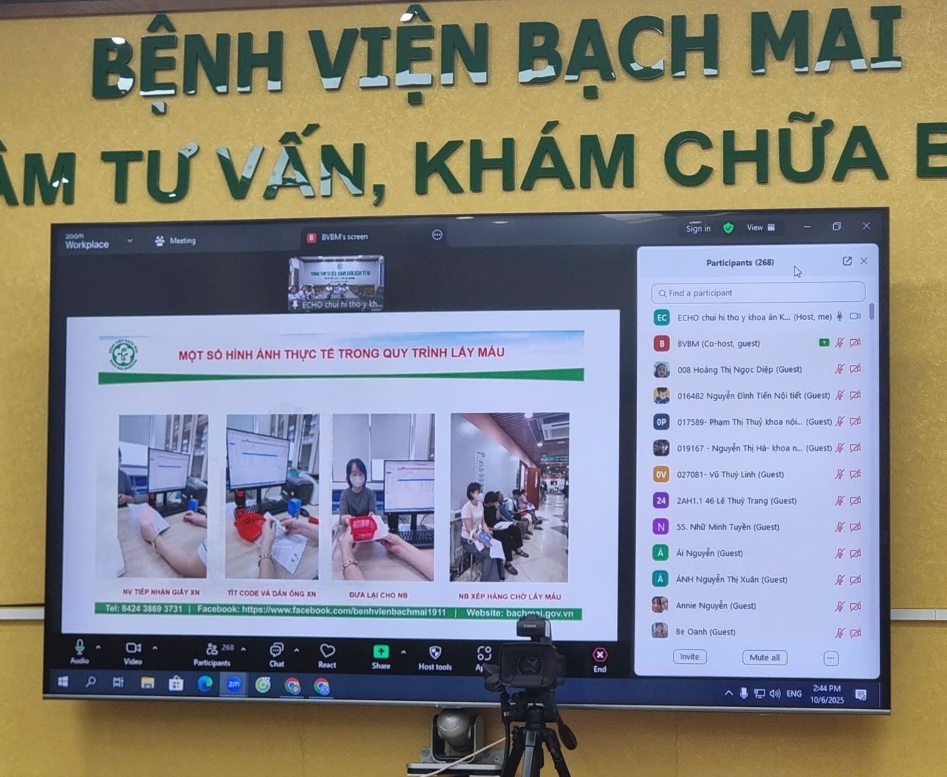 Buổi sinh hoạt chuyên môn qua nền tảng iECHO đã mang đến cơ hội để các cán bộ y tế cập nhật kiến thức mới, chia sẻ kinh nghiệm thực tế và cùng nhau tháo gỡ những khó khăn thường gặp trong quá trình lấy và xử lý mẫu bệnh phẩm, góp phần nâng cao chất lượng xét nghiệm và hiệu quả chẩn đoán tại Bệnh viện Bạch Mai.