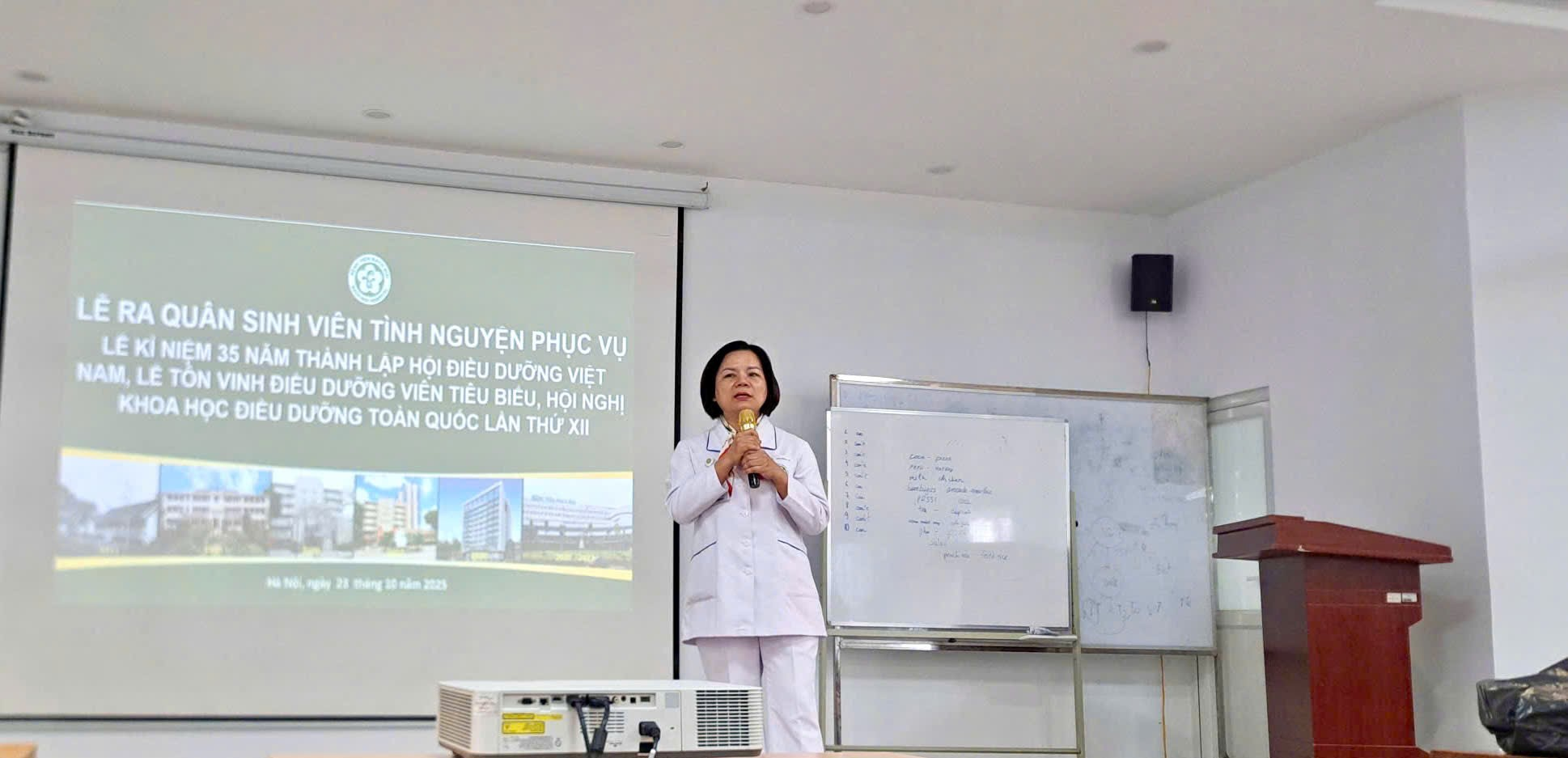 Đặc biệt, TTƯT.TS. Bùi Minh Thu – Quyền Trưởng phòng Điều dưỡng Bệnh viện Bạch Mai, Phó Hiệu trưởng Trường Cao đẳng Y tế Bạch Mai – đã trực tiếp hướng dẫn, căn dặn sinh viên trong buổi tập huấn và phân công nhiệm vụ. Cô nhấn mạnh tinh thần trách nhiệm, chuyên nghiệp và niềm tự hào của sinh viên Trường Cao đẳng Y tế Bạch Mai, đồng thời gửi gắm mong muốn các em sẽ thể hiện hình ảnh đẹp của sinh viên ngành y – tận tâm, chu đáo và đầy nhiệt huyết.