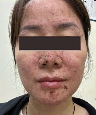 Hình 2. Hình ảnh phát ban dạng trứng cá sau điều trị thuốc TKI