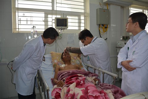 Các bác sĩ Trung tâm chống độc Bệnh viện Bạch Mai kiểm tra phản ứng của bệnh nhân được chuyển từ Bệnh viện Đa khoa tỉnh Lai Châu đến Bệnh viện Đa khoa tỉnh Lào Cai.