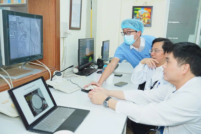 PGS. TS Vũ Văn Giáp – Phó Giám đốc Bệnh viện trực tiếp chỉ đạo, điều phối ca can thiệp cùng Heart Team của Viện Tim Mạch