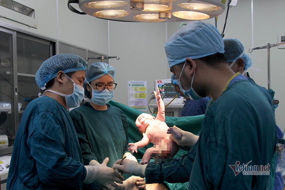 Điều hành trực tiếp ca mổ, Phó trưởng khoa Phụ sản Trần Quốc Nhân cùng kíp 7 người thực hiện trong khoảng 1 tiếng. Suốt quá trình đón cháu bé chào đời, bác sĩ Nhân thường xuyên hỏi sản phụ “em có đau không, bình tĩnh và thoải mái em nhé, chúng ta là những đồng nghiệp sát cánh cùng nhau”.