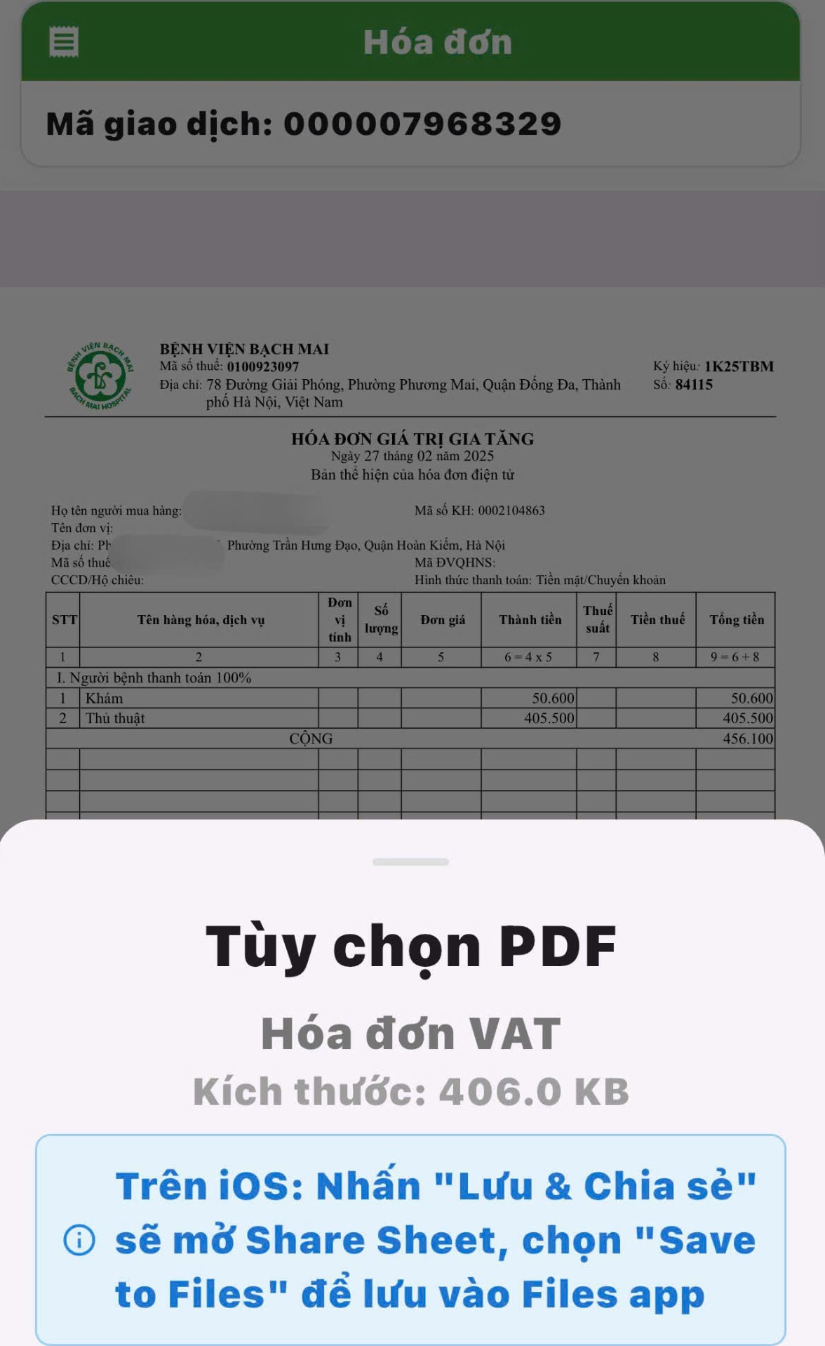 – Đủ giá trị pháp lý: Bao gồm đầy đủ thông tin pháp lý: ▪️ Mã số thuế bệnh viện (0100923097) ▪️ Ký hiệu hóa đơn ▪️ Chi tiết thuốc (tên, đơn giá, thuế suất, tổng tiền) – ✅ Dùng ngay cho bảo hiểm nhân thọ: Xuất file PDF → Gửi trực… Xem thêm