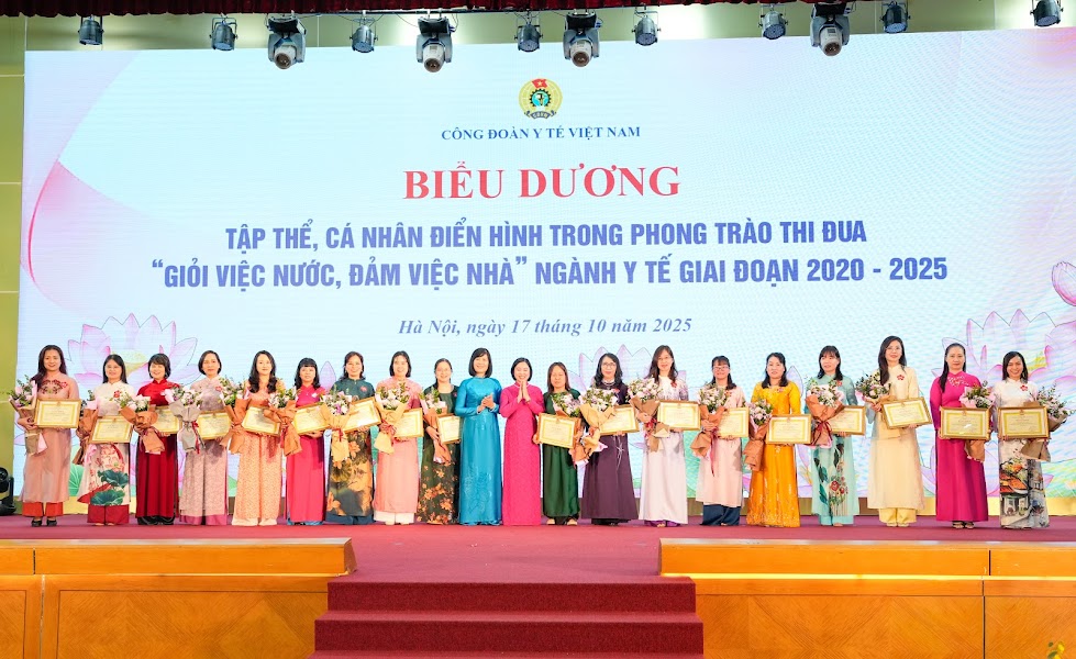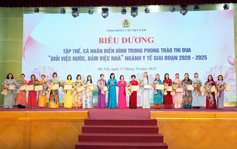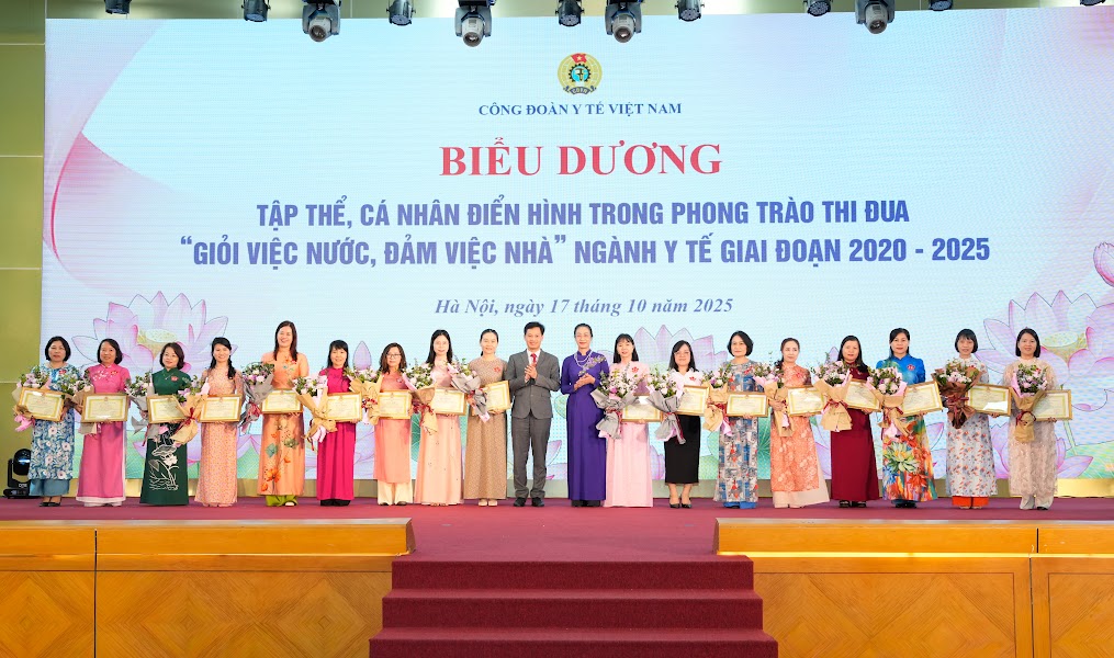 Cũng tại Hội nghị, 9 công đoàn cơ sở và 118 nữ đoàn viên công đoàn xuất sắc ngành y tế trong phong trào “Giỏi việc nước, đảm việc nhà” đã được tôn vinh, nhận Cờ thi đua và Bằng khen của Ban chấp hành Công đoàn Y tế Việt Nam. Đây là những ghi nhận chính đáng, kịp thời cho những nữ công đoàn viên đã luôn tận tụy, kiên cường, cống hiến thầm lặng cho sự nghiệp chăm sóc và bảo vệ sức khỏe cộng đồng.