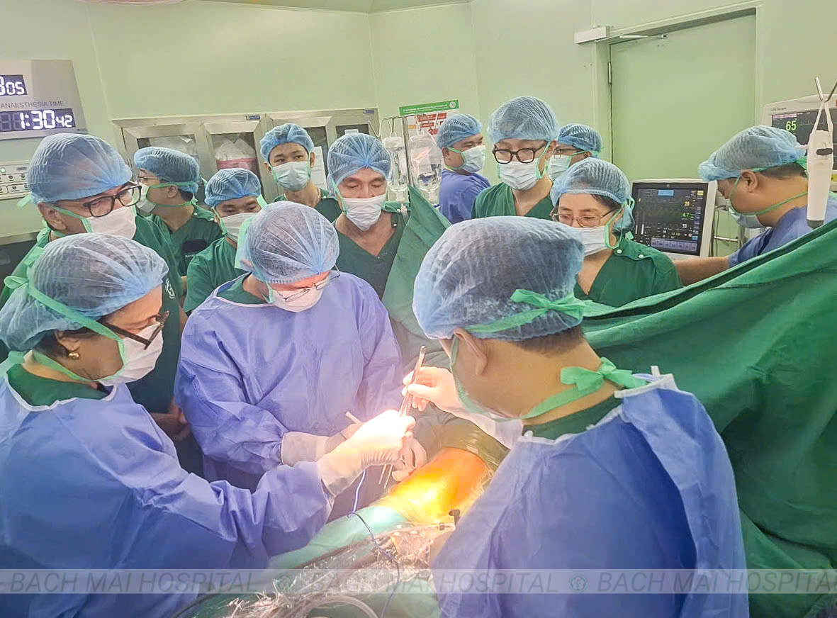 Khoảng 50 bác sĩ, học viên và bác sĩ nội trú từ nhiều bệnh viện trên toàn quốc đã tham dự, quan sát và trao đổi trực tiếp tại phòng mổ.