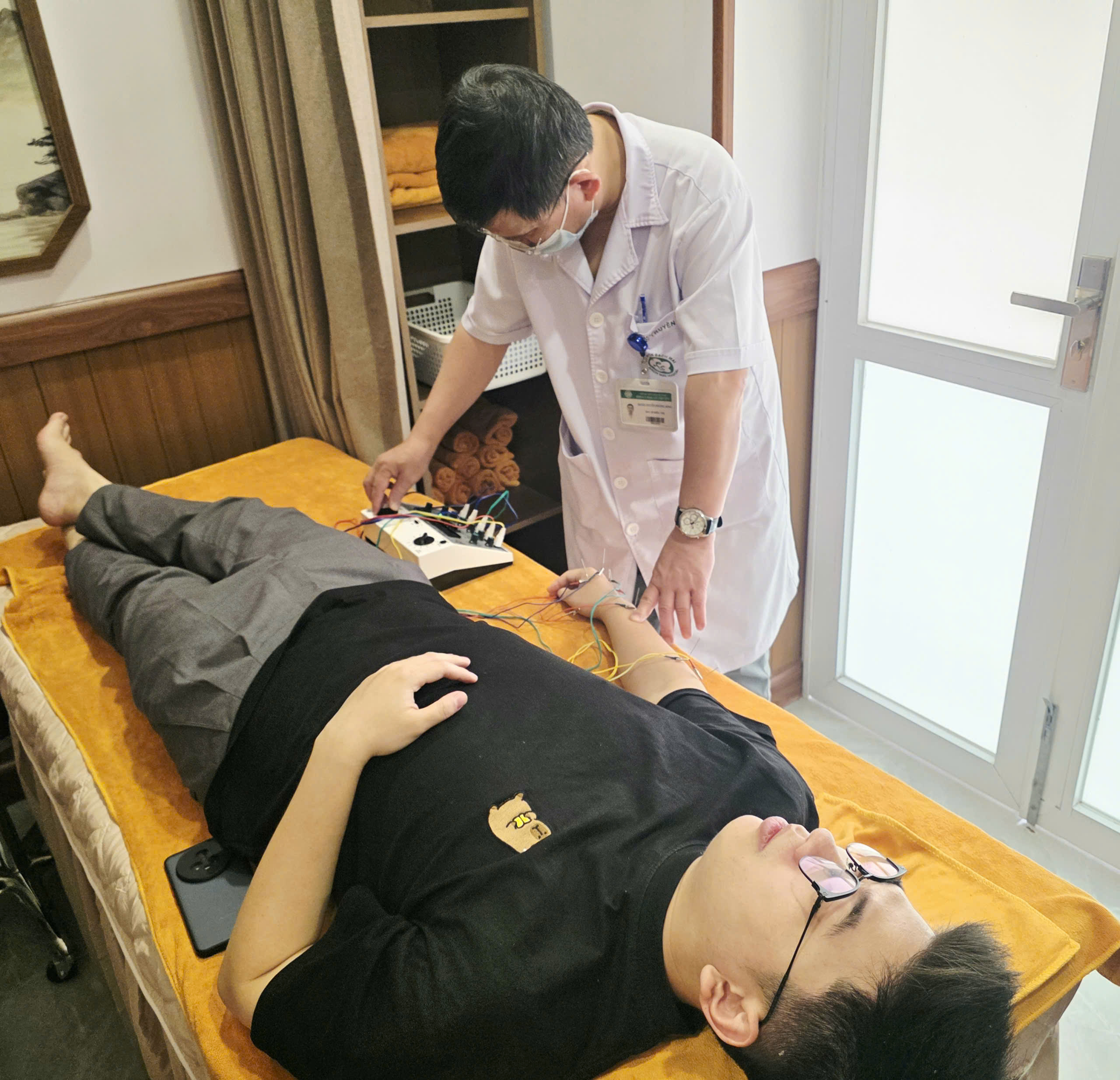 Liệu trình điều trị được thực hiện kết hợp giữa y học cổ truyền và hiện đại, bao gồm: cố định, giảm phù nề bằng thuốc chống viêm và vitamin nhóm B (B1, B6, B12); xoa bóp nhẹ nhàng dọc theo cẳng tay; châm cứu với các huyệt Khúc Trì, Thủ Tam Lý, Hợp Cốc, Dương Khê, Ngoại Quan nhằm thông kinh lạc, bổ khí huyết; điện châm xung tần số thấp để kích thích phục hồi dẫn truyền thần kinh – cơ.